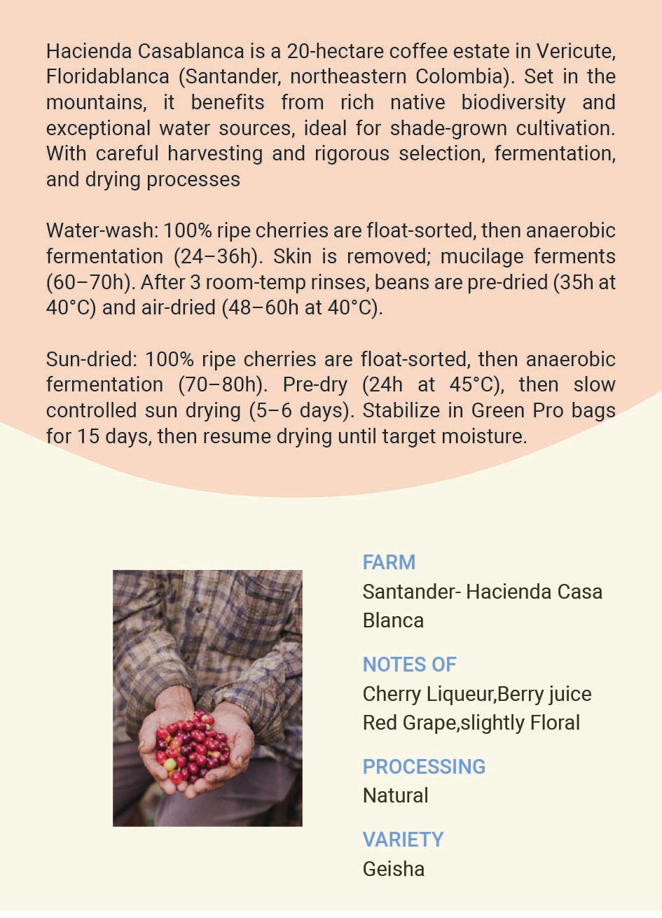 Colombia Santander-Hacienda Casa Blanca Geisha Washed&Natural
